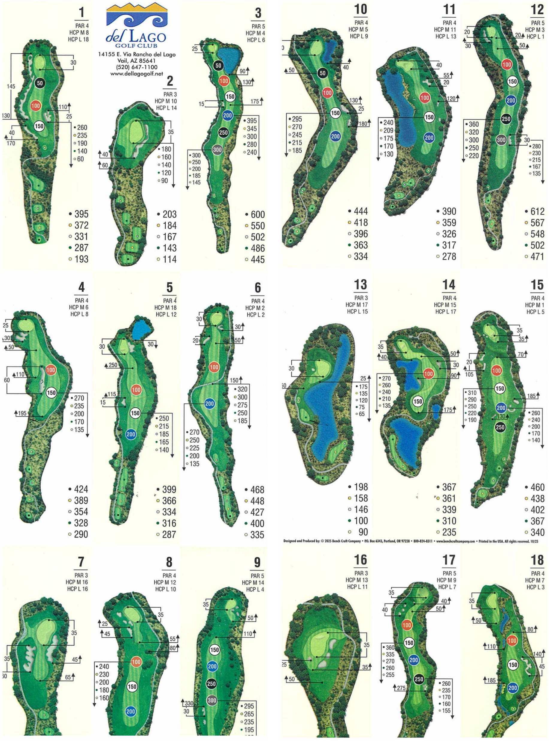 Del Lago offers 5 tees boxes, Black/Gold/Silver/Green and Tan, as well as being rated for Combo Tees to accommodate players of all abilities.